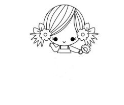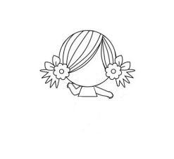 然后顺着花朵画出马尾,一条条均匀的弧线画在头顶就像真的头发一样。
