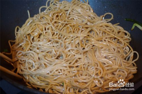 6、下面条,翻炒均匀。