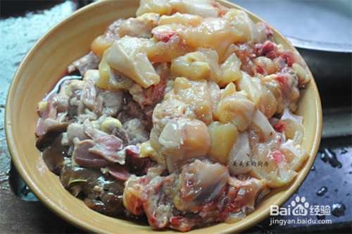 鸡洗净,开膛剁成块,鸡油、皮和鸡块分开;