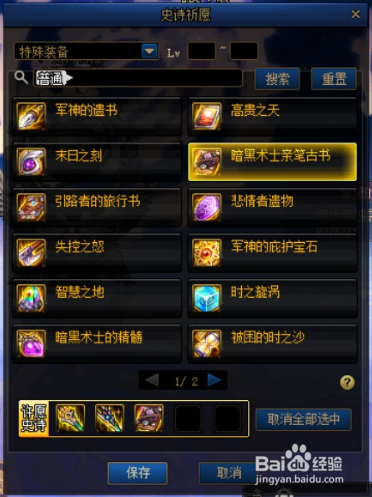 选择祈愿史诗并保存,无法选择神话,因为神话自带特效。