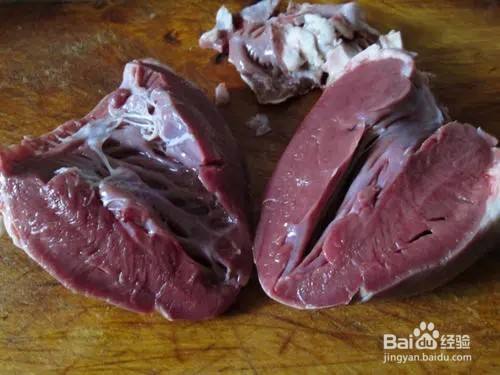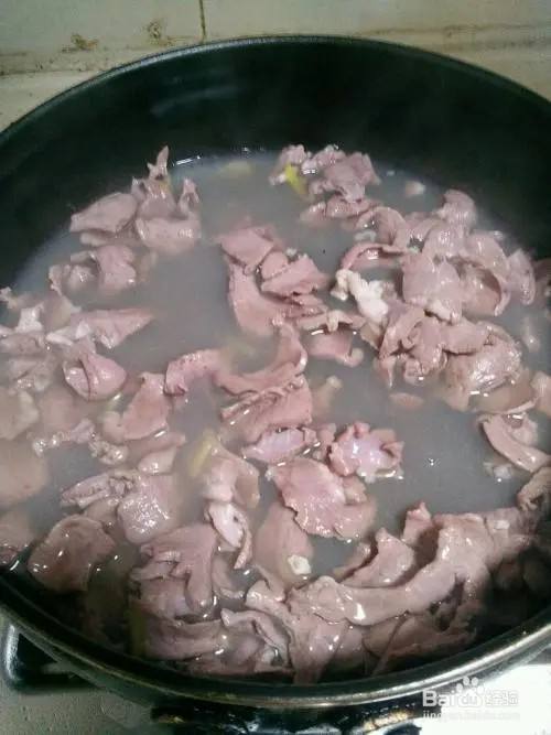 猪心切成薄片,清洗后放入冷水中加姜片、料酒焯水。