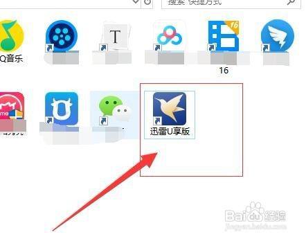 2、接着,打开电脑已经安装好的迅雷软件(个人比较喜欢使用迅雷U享版,这里以此版本为演示)。如图: