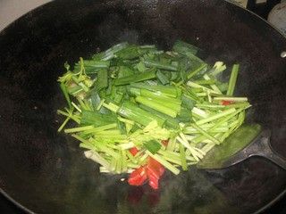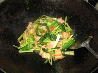 待芹菜等断青,加盐,鸡精调味就可以上桌了。