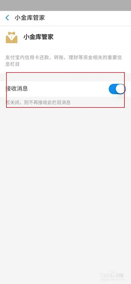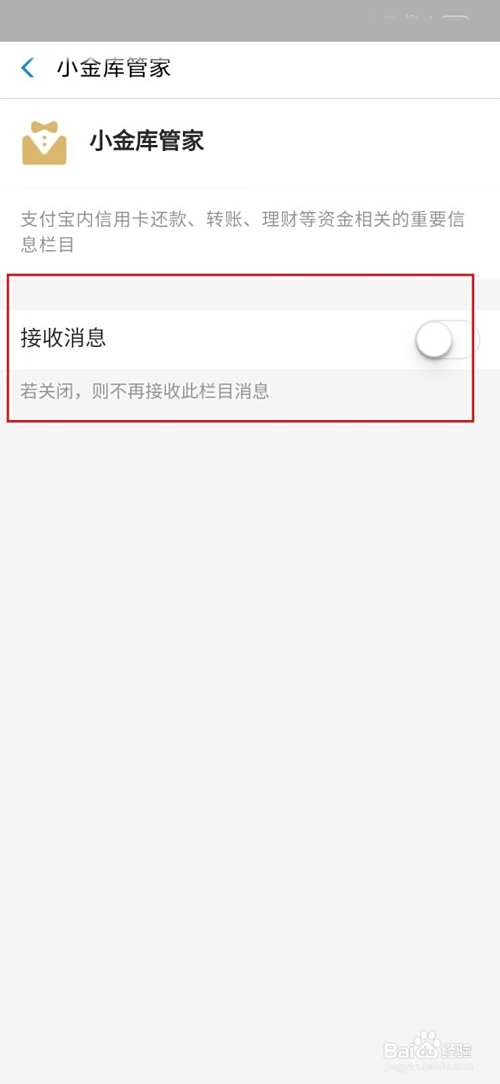 如果你只是部分消息不想接收,那么你还可以这样设置,就是点击具体的选项,比如“小金库管家”