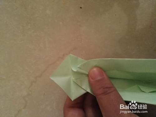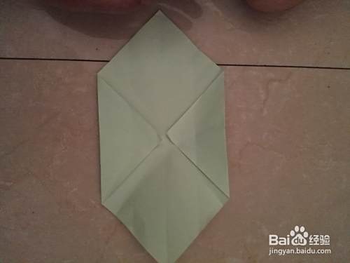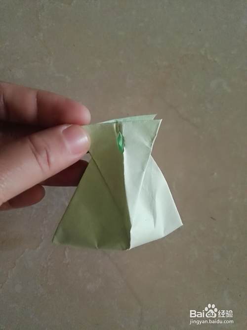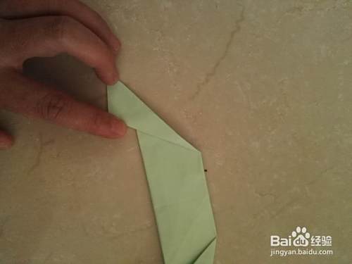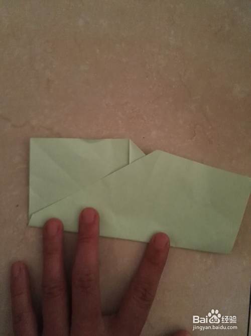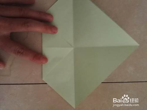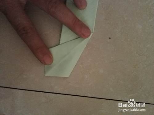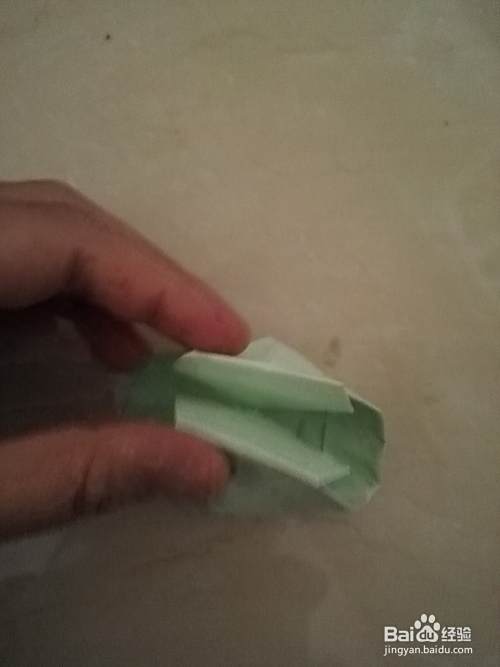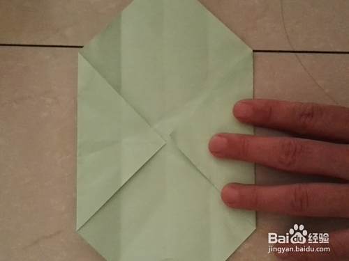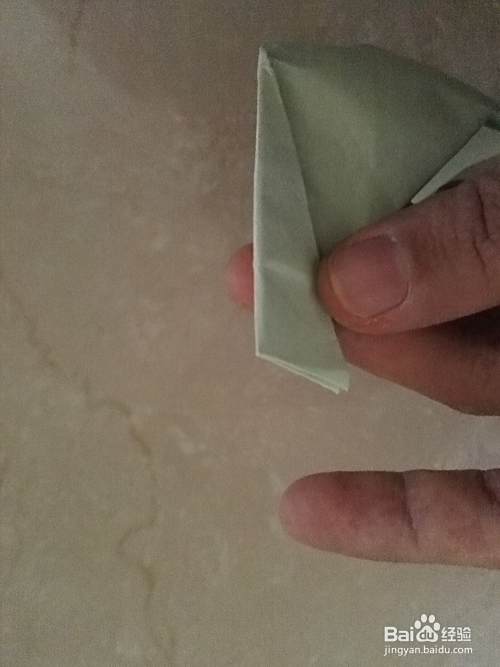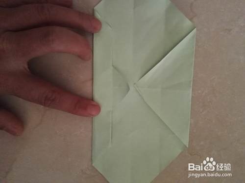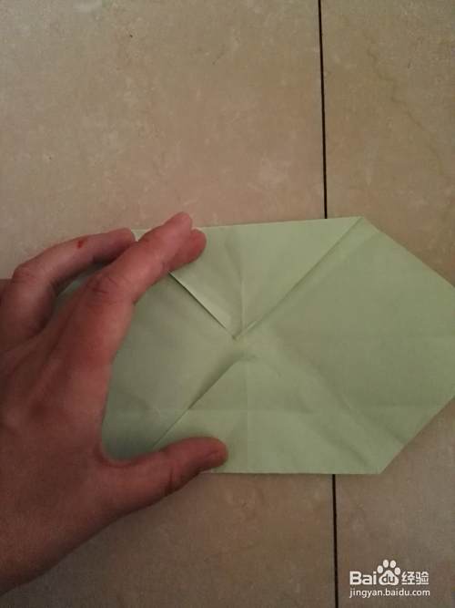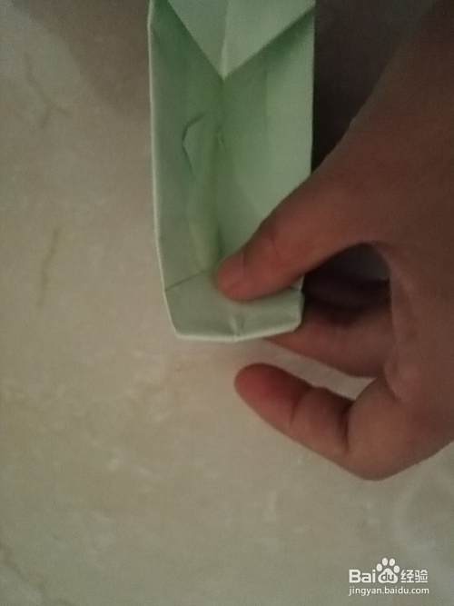 两边角向上折,这里要折两次,一边折好后用手撑开里面并按压平整,就会像下图中一样。