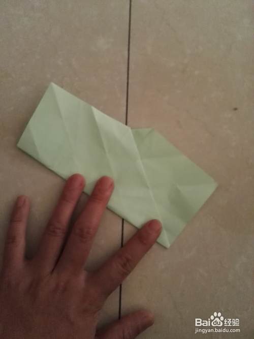 四次对折后然后展开回到中线对折位置,两边沿折痕往中线折,留一点不要与中线完全对齐,两边折好后再对齐折一下。