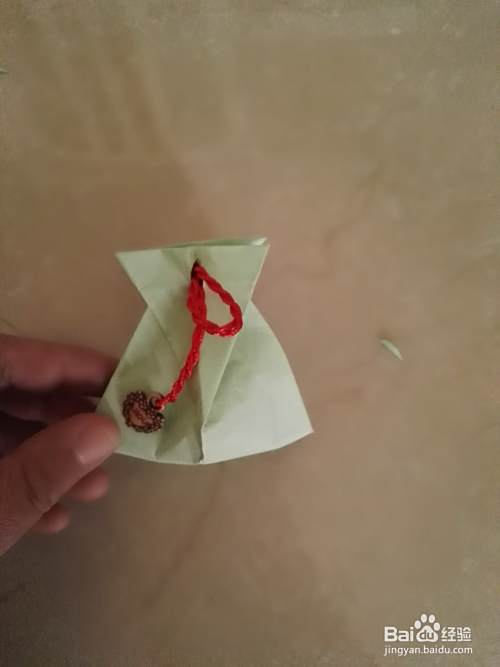 最后就是把准备好的红绳穿进去就行了。(大家可以选漂亮一点装饰品,会更加漂亮呀)