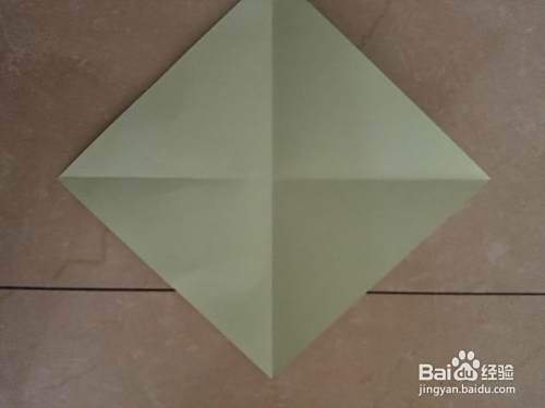 准备一张正方形彩纸,先沿对角十字型对折,然后左右两边再沿中线对折。