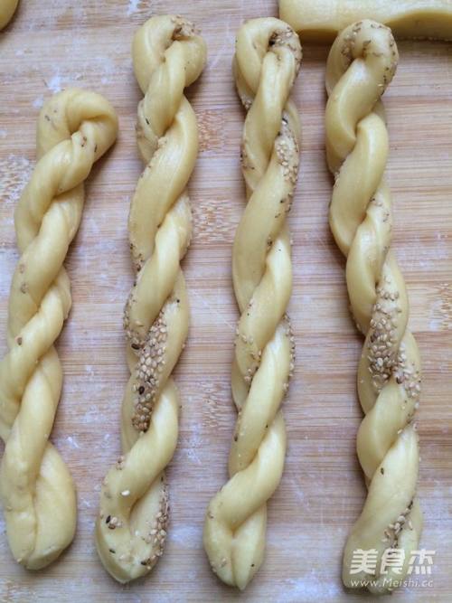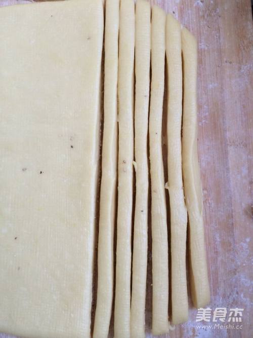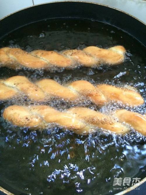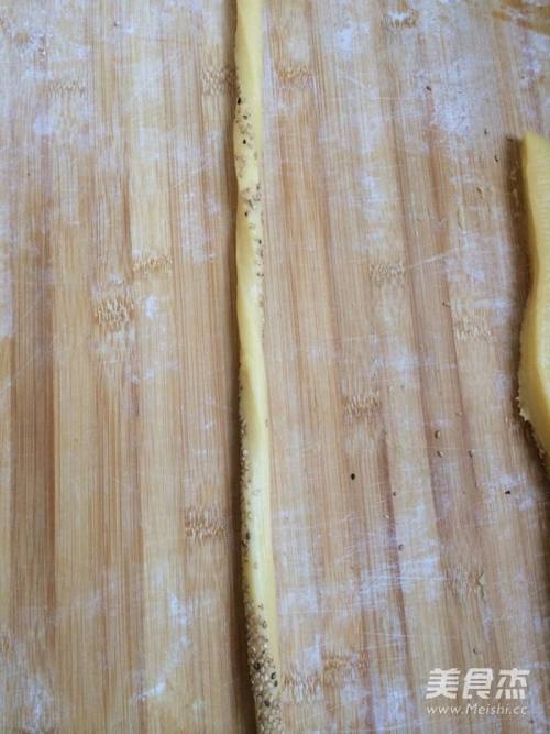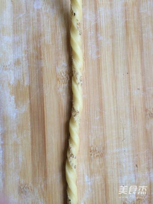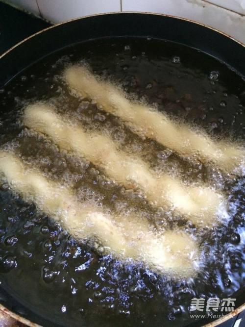 取其中的一条,双手将其搓细,太粗不容易炸透。