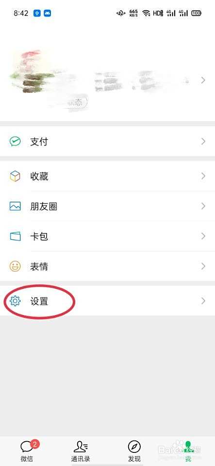 第一步,在微信主界面中点击“我”,然后再点击“设置”。
