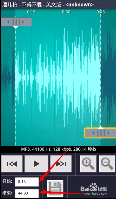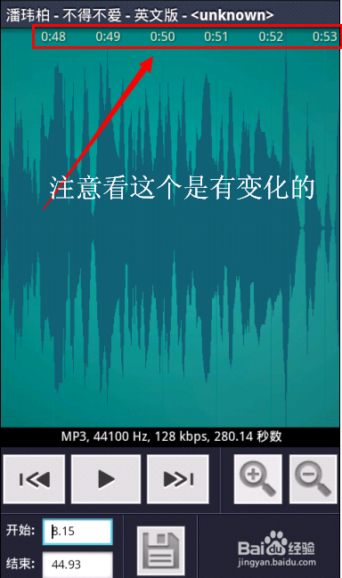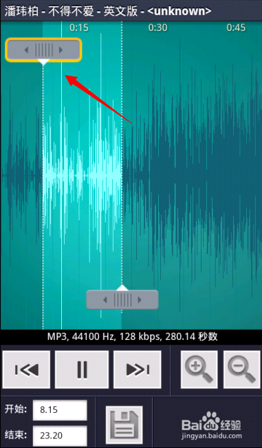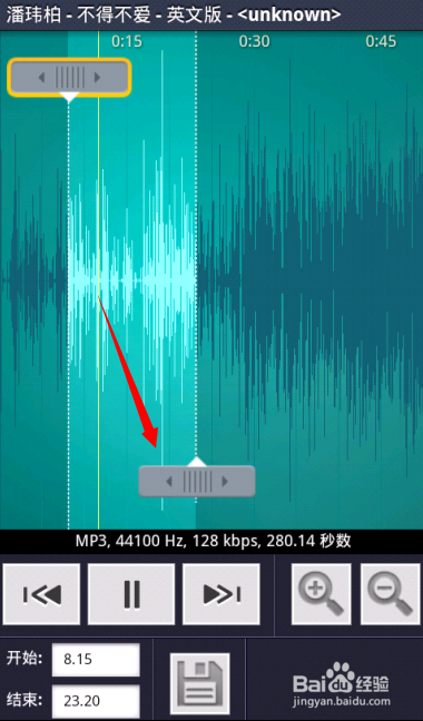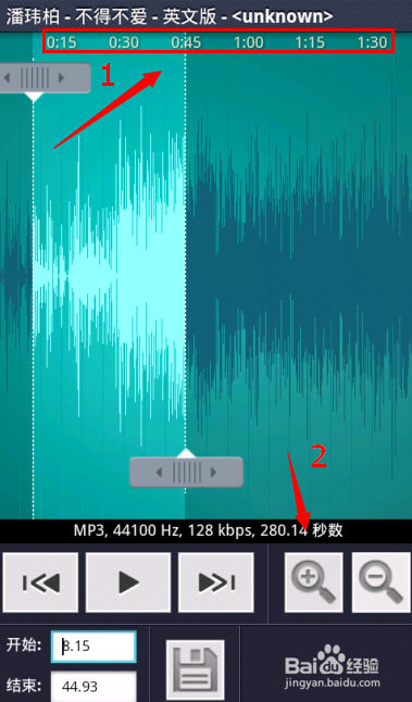 看图上面的滚动条是开始裁剪的点(歌曲从这里开始播放)