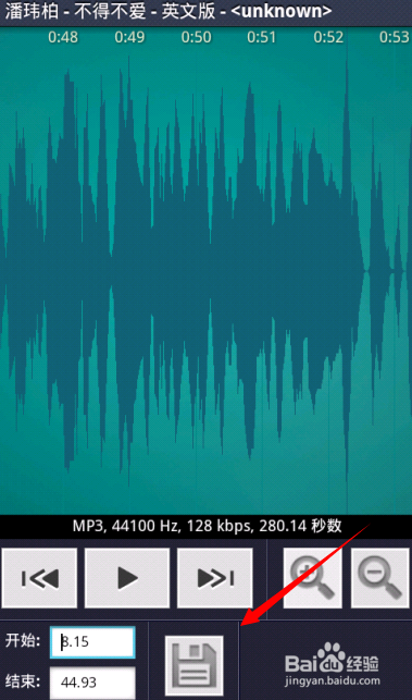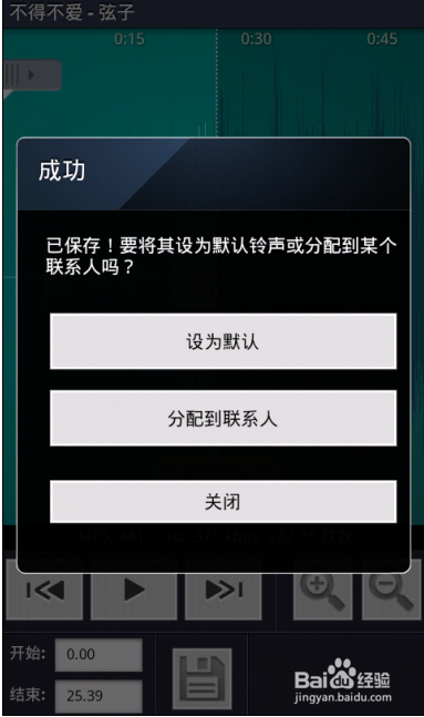 看图下面的滚动条是结束裁剪的点(歌曲到这里结尾播放)