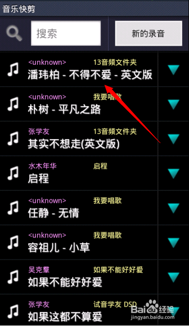 选择你要裁剪的歌曲(显示的是SD卡上所以的音频文件)
