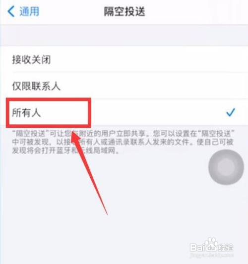 第三步、最后,点击所有人选项,打开隔空投送功能即可互传。