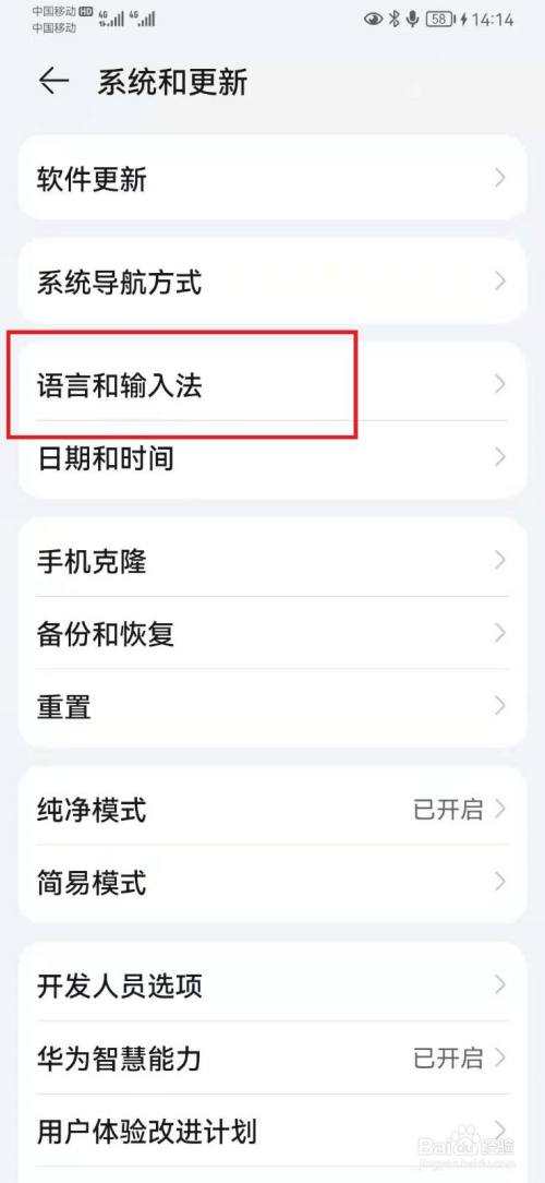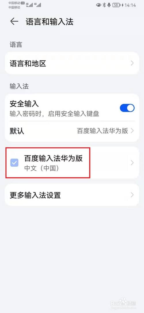 进入语言和输入法设置页面,打开百度输入法华为版选项。