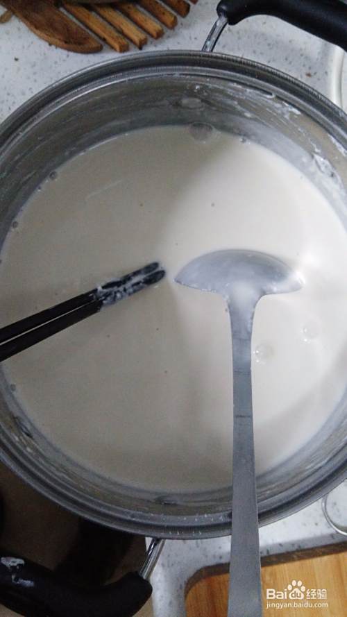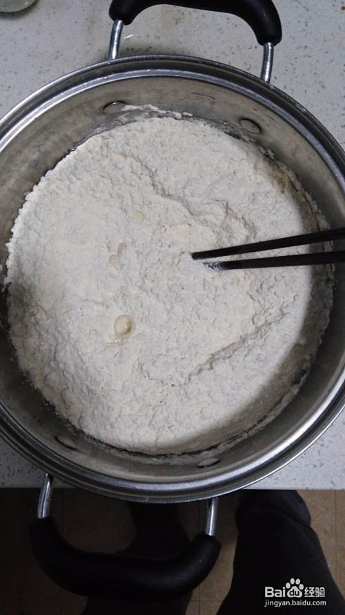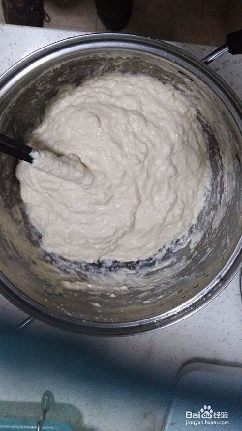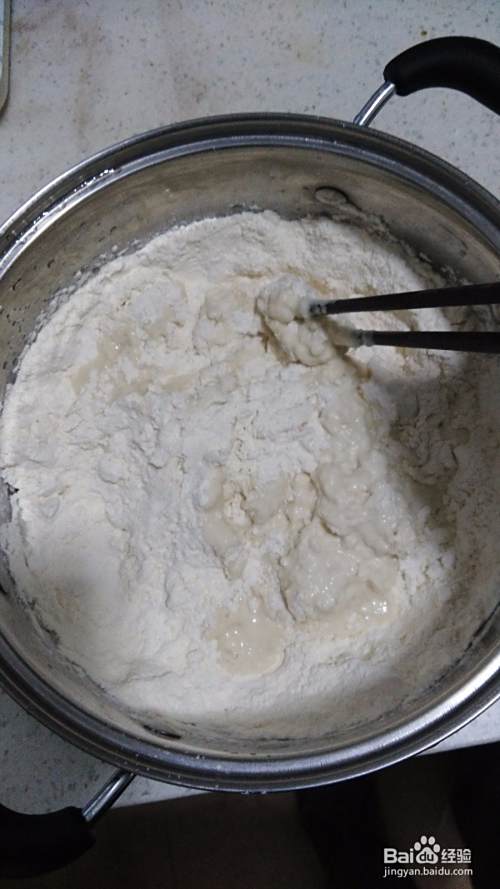 将饮用水慢慢倒入面粉中,且不断搅拌!直到下一步。