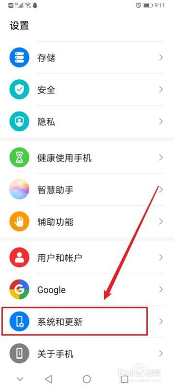 在设置列表中,选择系统和更新。