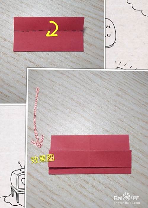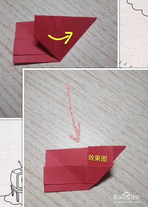 将上一步翻上去的边再沿所画虚线向下翻折!效果如下!