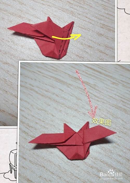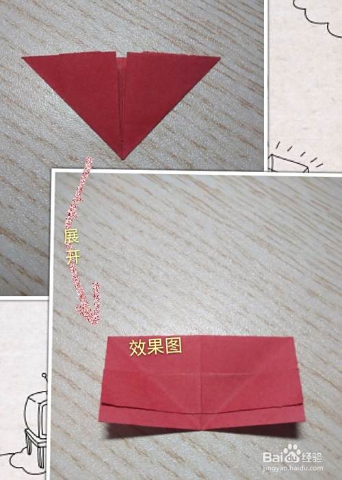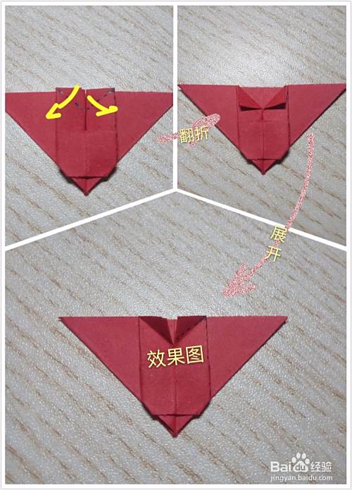 将右半部分按下图所示方式从中间空隙处沿所折痕迹展开!效果如下!
