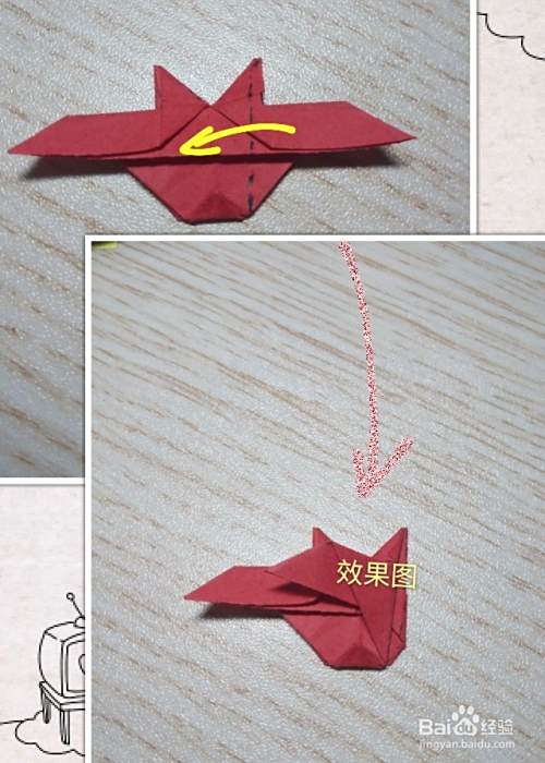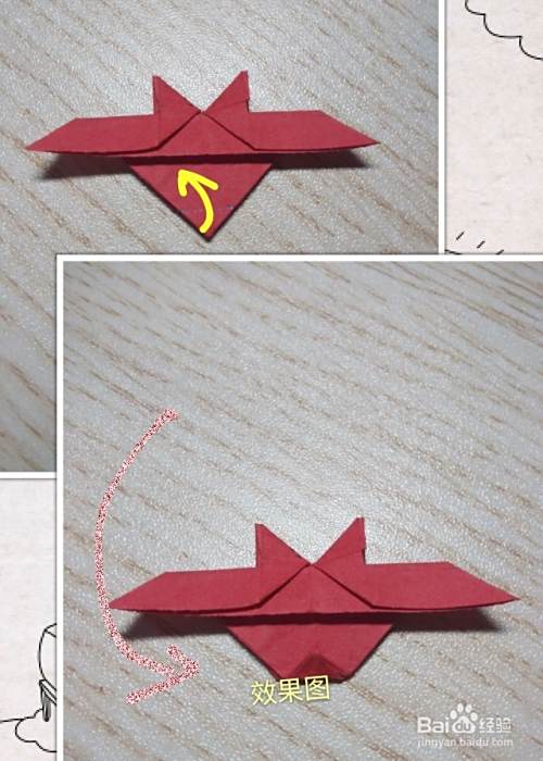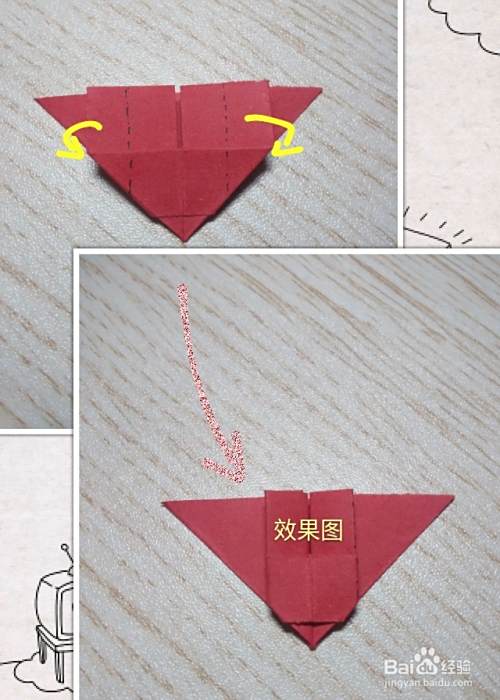 将中间部分第一层的左右两边分别沿所画虚线向后翻折!效果如下!