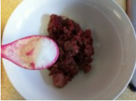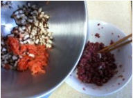 胡萝卜擦丝,和香菇丁一起倒入肉馅中拌均就调好馅了