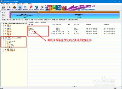 打开DiskGenius,打开U盘目录结构,如下图,将符合自己电脑的EFI文件替换进去即可。