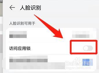 3、进入【人脸识别】后,点击【访问应用锁】后的功能开关,将其打开即可。