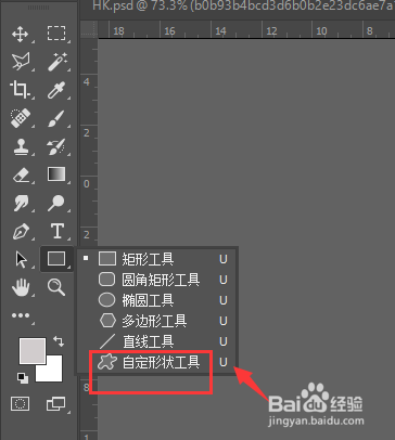 选择其中的【自定义形状工具】