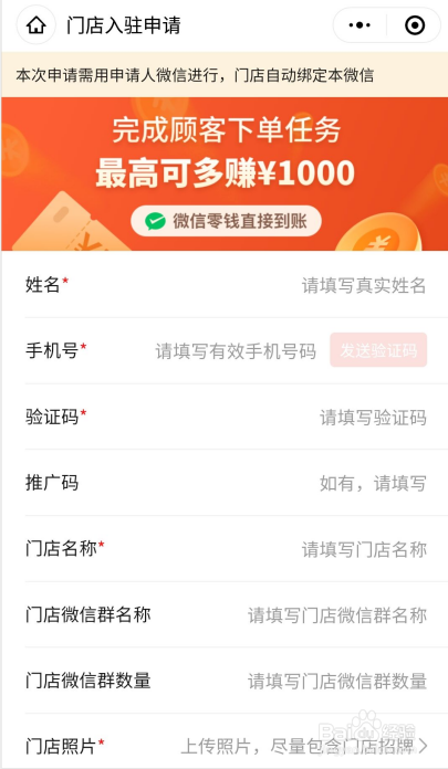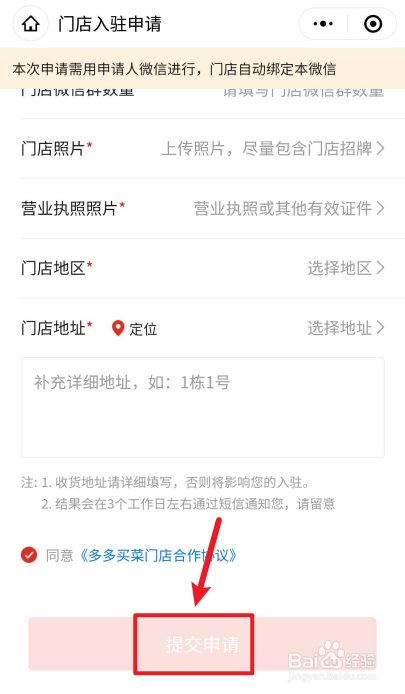 输入你的手机,姓名,门店地址【营业执照等信息】,提交申请即可,等待审核通知吧!