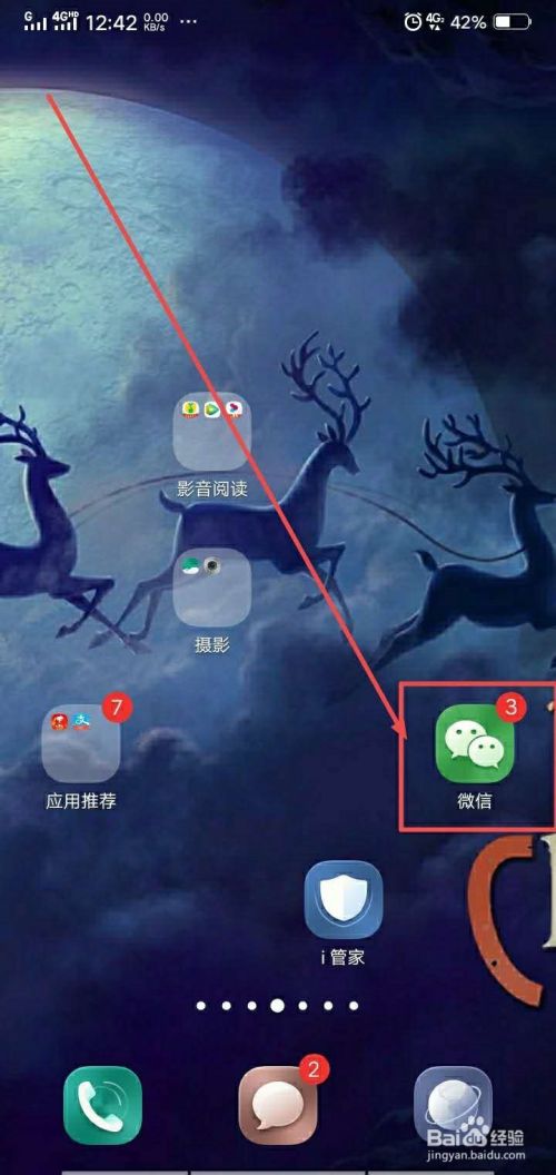 1.先打开手机,打开微信。