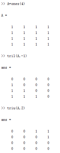 A1=tril(A,k) 生成A矩阵中第k条对角线的下三角部分矩阵;