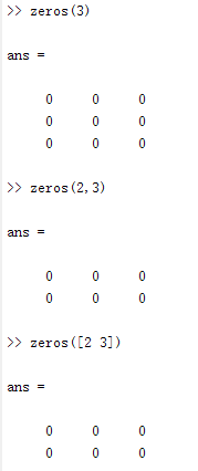 A=zeros([m n]) 生成m×n阶0矩阵;