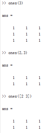 A=ones(size(B)) 生成与B矩阵大小相同的1矩阵。