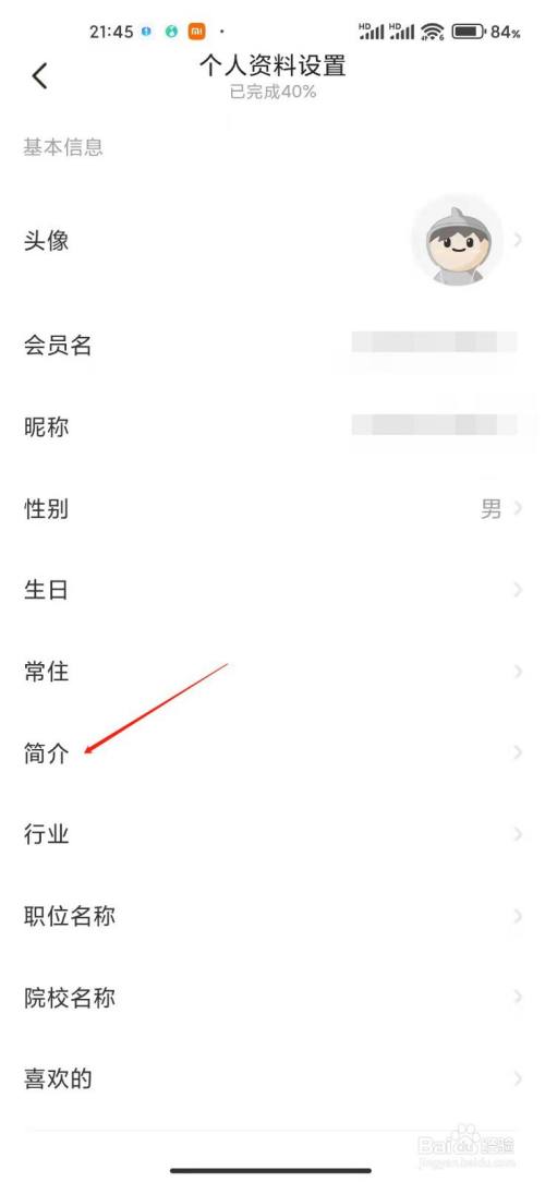 4、进入资料设置,点击简介即可