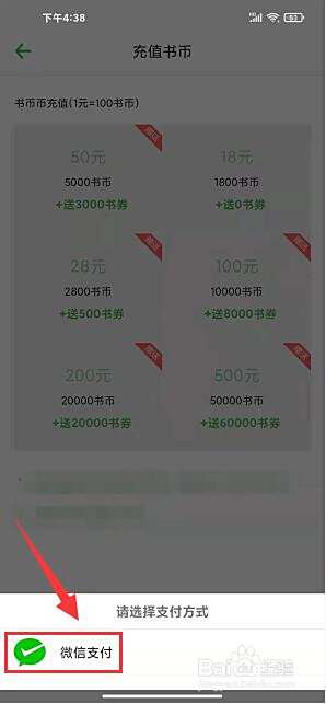 选择充值金额。