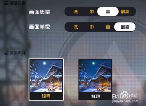 我们要将画质降低一级,然后将帧率设置为最高,并将画面效果设置为经典。