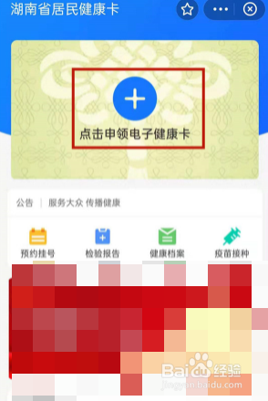 在居民健康卡页面点击+按钮申领电子健康卡。