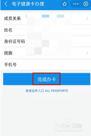 确认个人信息后,点击完成办卡。