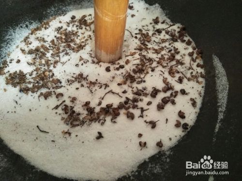 用擀面杖将炒好的胡椒粉碾碎,使炒好的胡椒盐更加香甜可口。