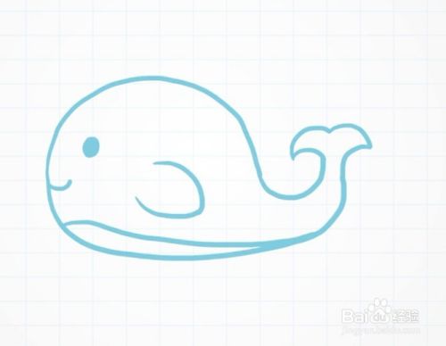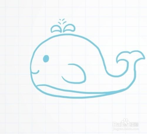 最后在鲸鱼的脑袋上画上水珠,这样一只栩栩如生的鲸鱼就画好了,如下图所示。