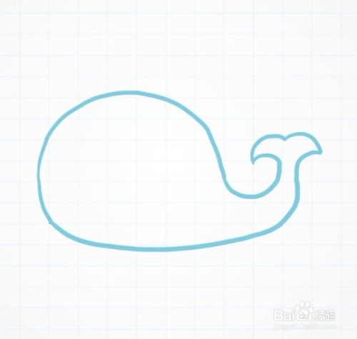 然后再用一条弧线连接鲸鱼的头和尾,如下图所示。