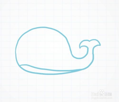 然后在鲸鱼的身上画一条弧线,使鲸鱼的肚皮凸显出来,如下图所示。