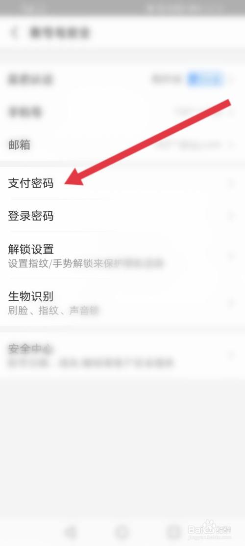 点击支付密码选项。