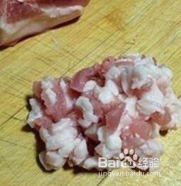 五花肉切成1分左右的丁。