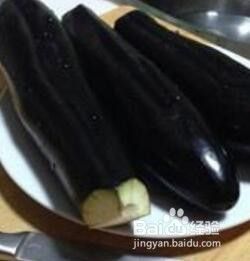 茄子洗净去蒂,在两端用刀割破表皮。
