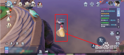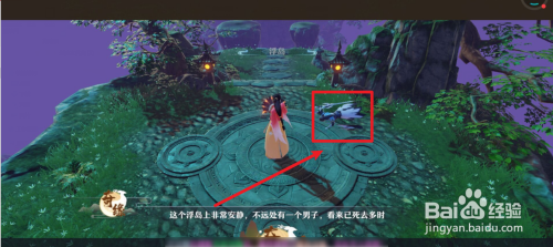 我们来到对面的浮岛,找到陈旧的宝箱以及女子。