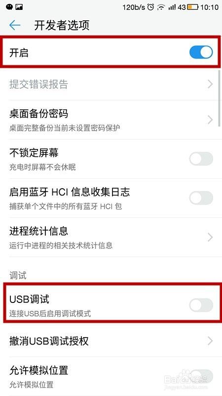 拨动最上面的开启按钮,以及USB调试选项。现在连接电脑即可实现在电脑上安装卸载手机内容了。