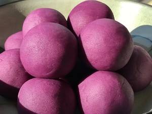 10、不加一滴水的紫薯馅很容易炒好,糖和油可根据自己的口味酌情添减,最终成品馅料的重量和食材几乎等同;