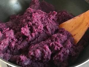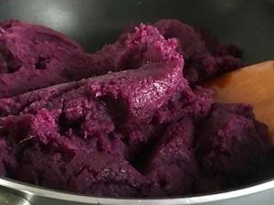 7、炒至紫薯泥非常有阻力,而且不粘锅铲;