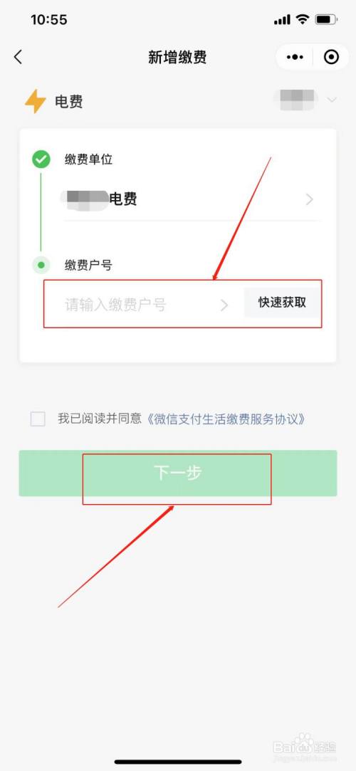 输入缴费户号,勾选同意,点击下一步缴费即可